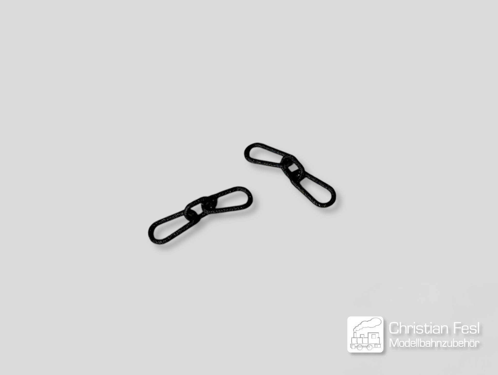Originalgetreu geformte Kuppelketten zum Kuppeln von Feldbahnfahrzeugen. Kompatibel zu den Hauseigenen Puffern und Kuppelbolzen.