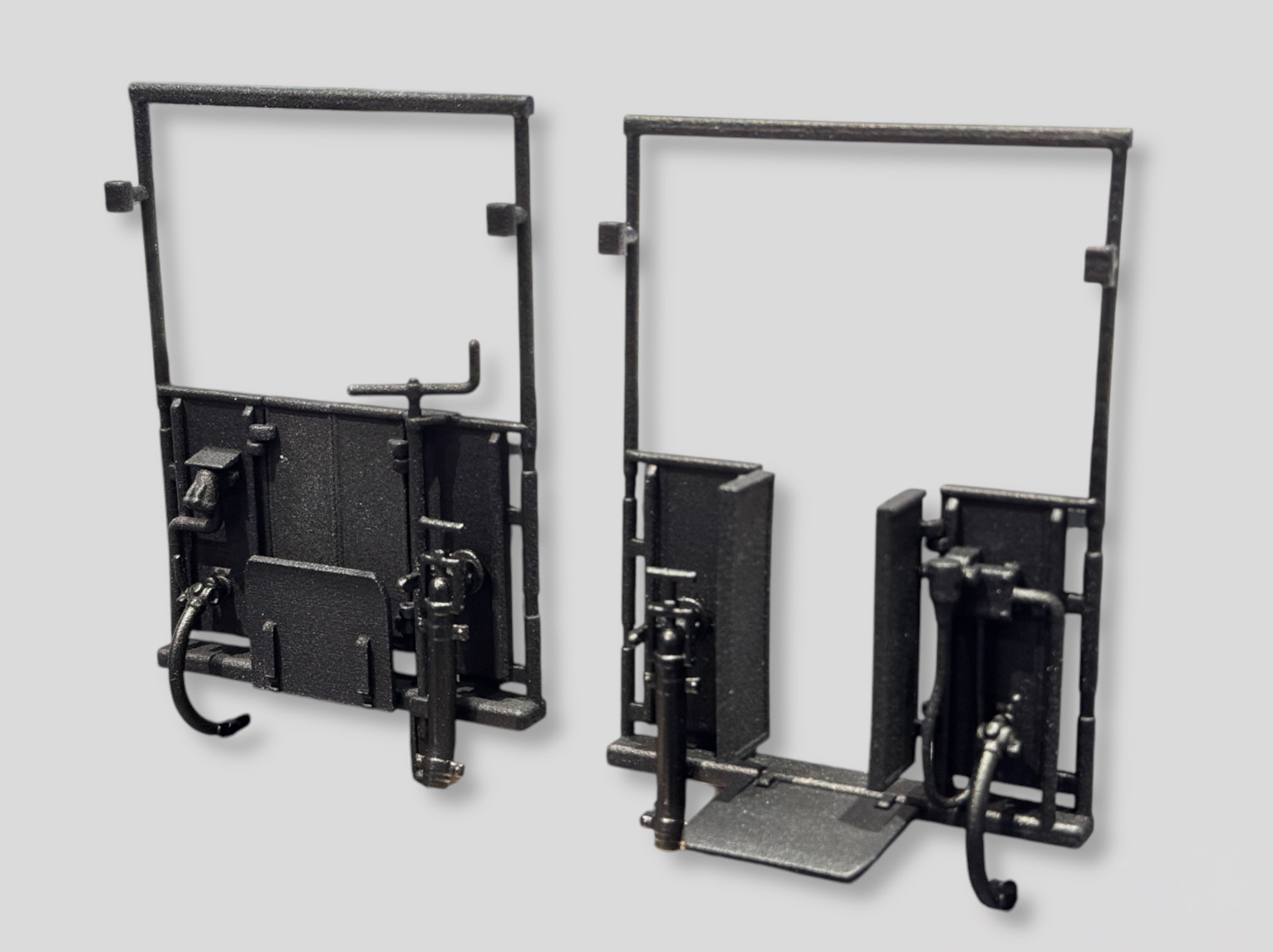 Bühnengeländer für die LGB-Wagen 30350 etc. Mit zu öffnenden Übergangstüren, so wie sie aktuell beispielsweise in Zittau oder Fichtelbergbahn eingesetzt werden.