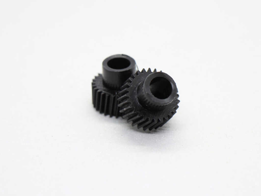 Die Zahnräder mit je 28 Zähnen und einem Winkel von ca. 10 Grad sind für das B-Getriebe einer ToyTrain-Dampflok.
