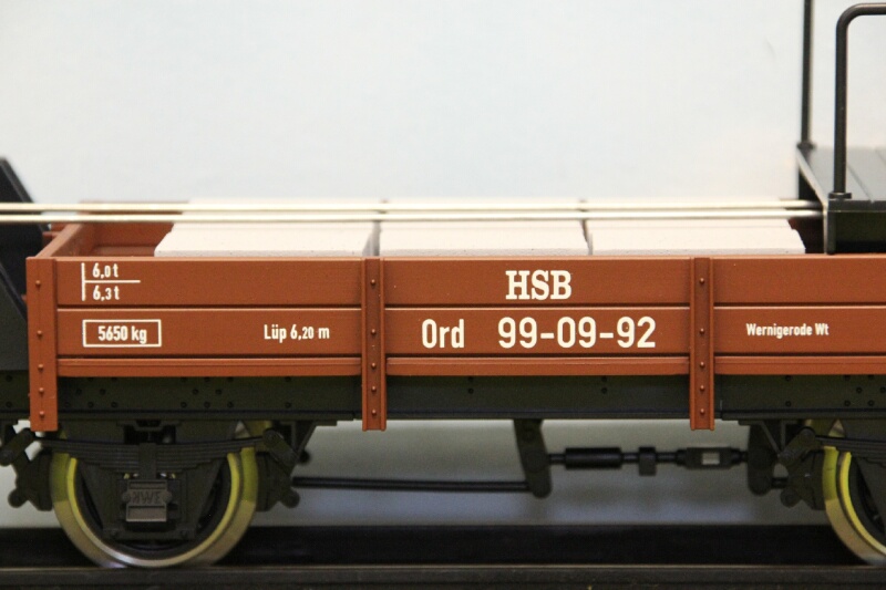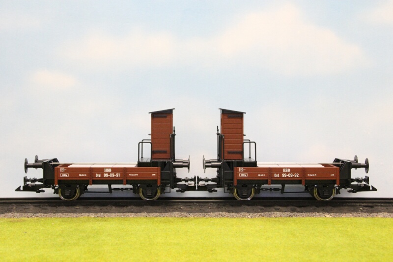 Als Vorbild für unsere Modellen, diente die HSB 99-09-91 und 99-09-92. Viel Wert it gelegt worden auf die genaue Umsetzung in Maßtab 1:22,5. Die Modelle sind aus hochwertiges durchgefarbten Kunststoff hergestellt. Die Modelle sind ausgestattet mit edelstahl Radreifen. Kugellager Achsen sorgen für das beste Fahrverhalten. Die Regelspurpuffer sind gefedert.