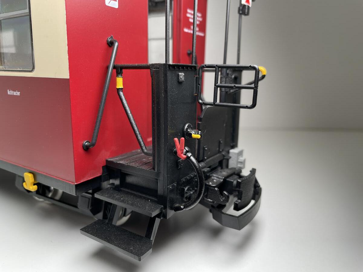 Verschlussstopfen für die Bühnen der HSB-Wagen von TL. Bei diesen Wagen sind werkseitig beidseitig Bremskurbeln montiert.
