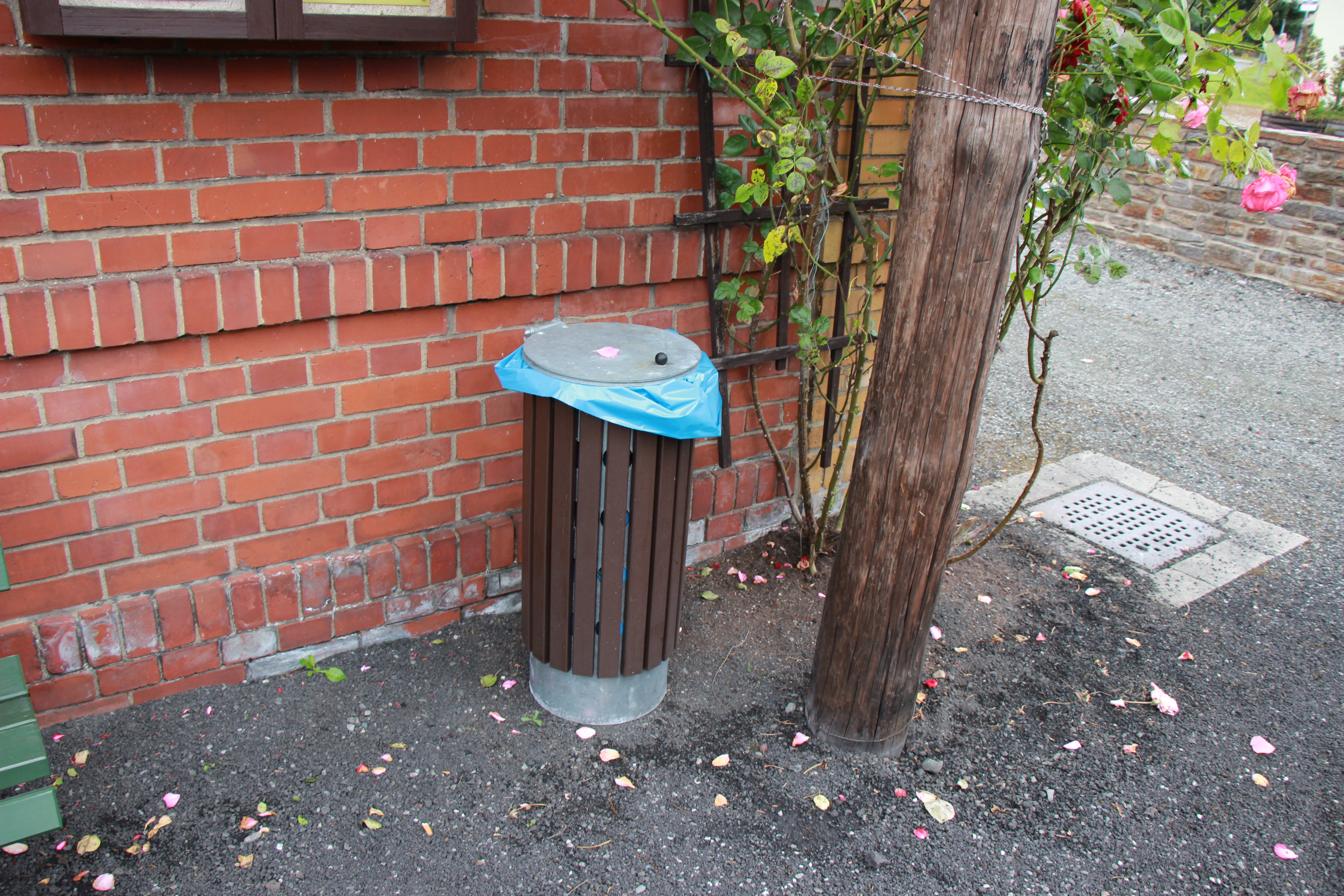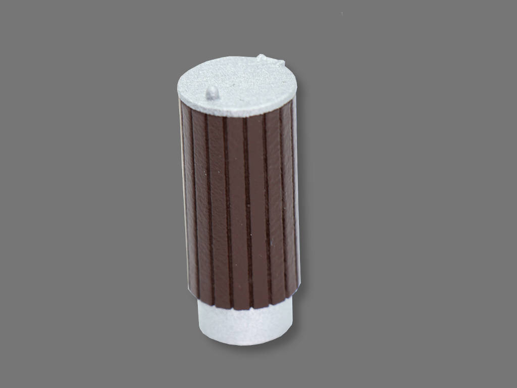 Mülleimer nach dem Vorbild der Mülleimer auf den Bahnsteigen der Preßnitztalbahn. Fertig lackiert.