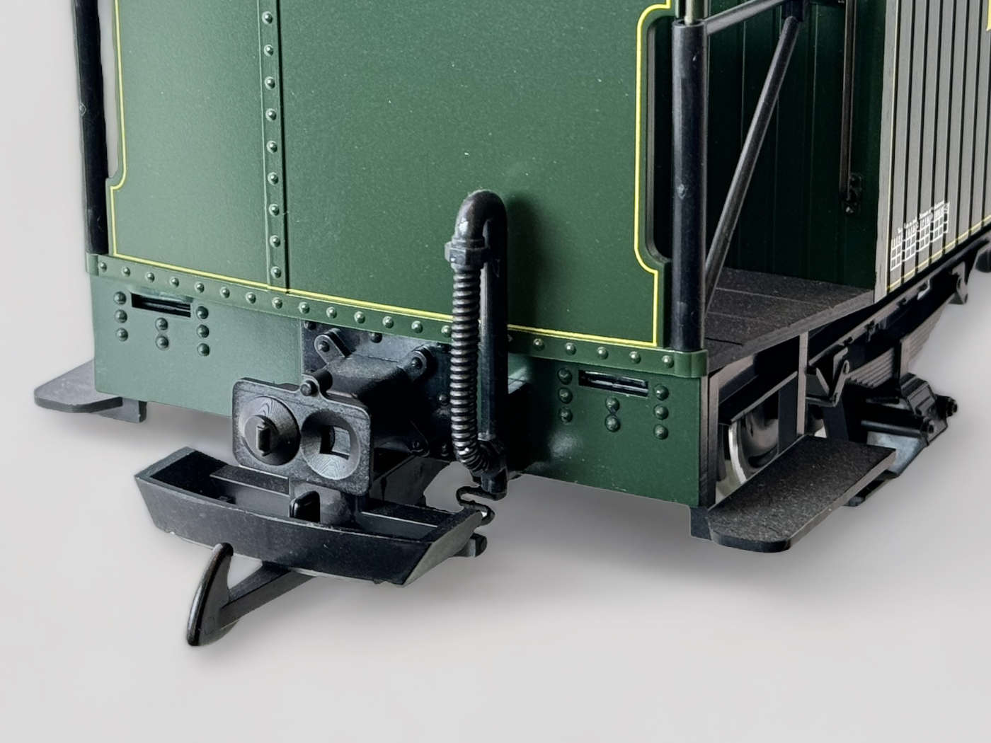 Variante der Scharfenberg-Attrappe passen an die 2-Achser LGB-Standardfahrwerke. schwarz lackiert.