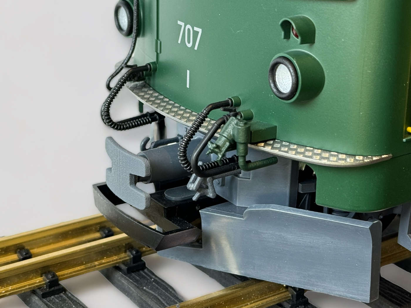 Vorbildgerecht nachgebildete Steckdosen für die Fronten der 700er Loks von LGB.