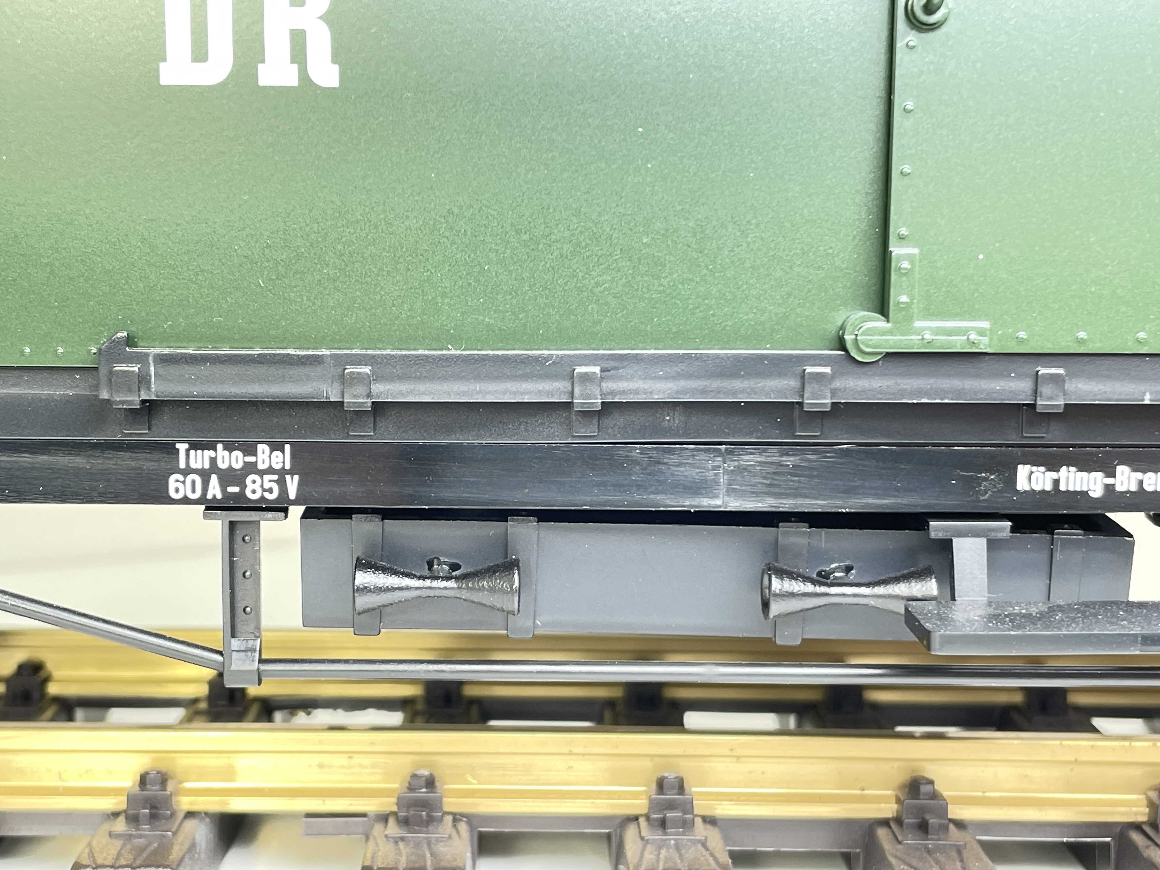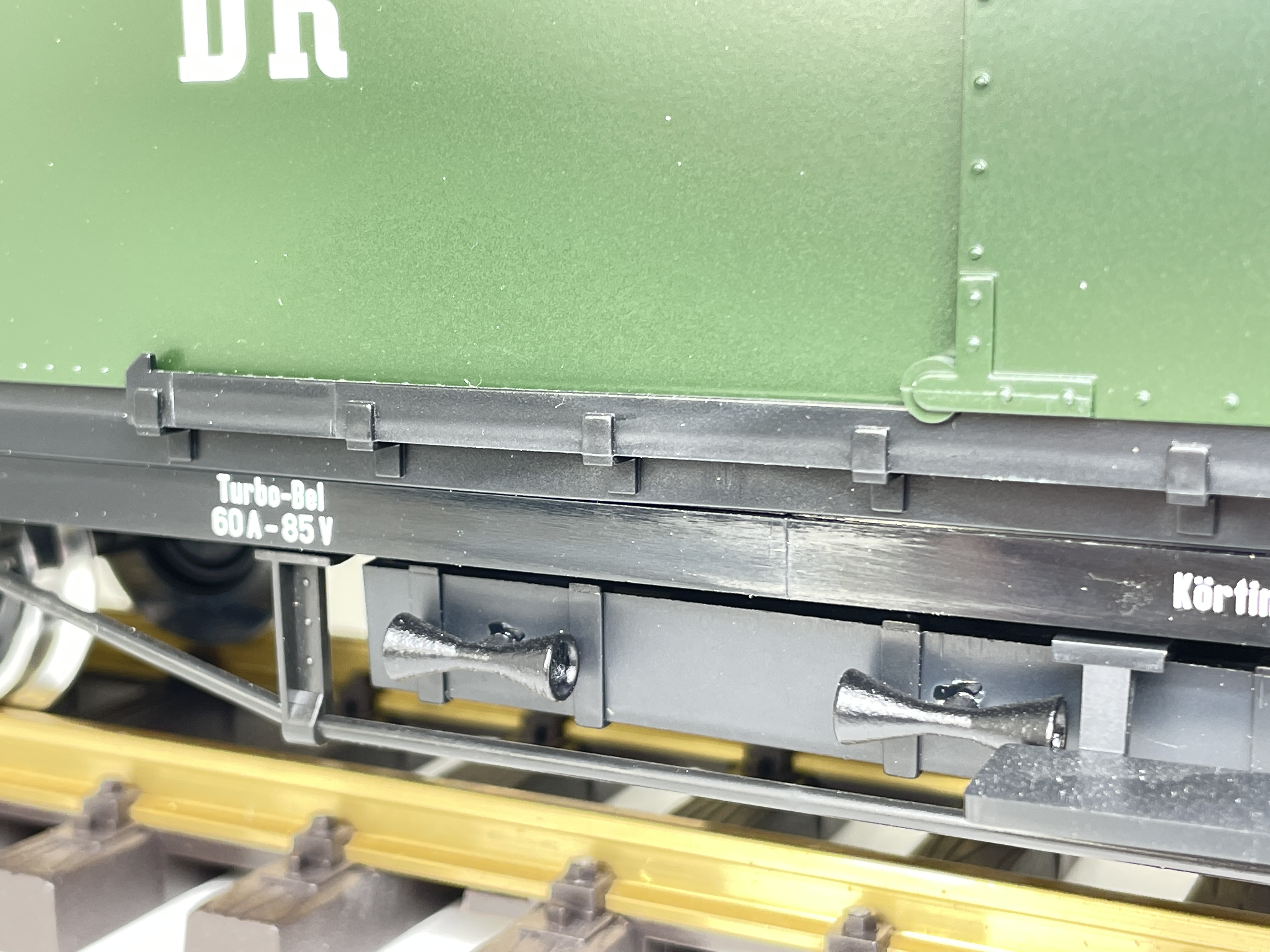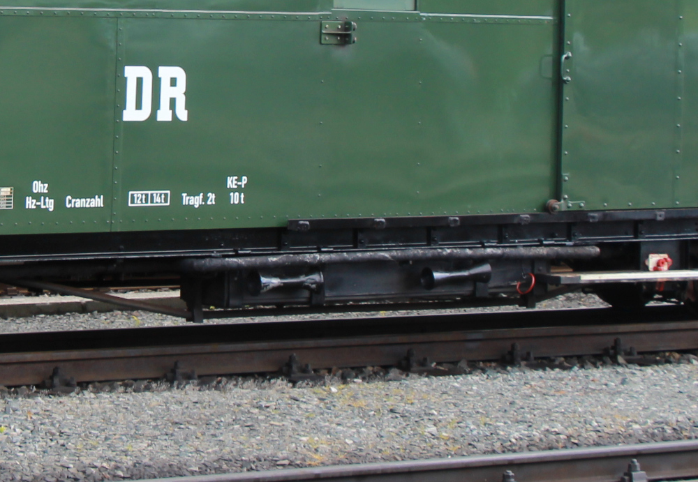 Ein kleines Detail für die sächsischen 4-Achs-Gepäckwagen stellen die Trompeten an den Batteriekästen dar.