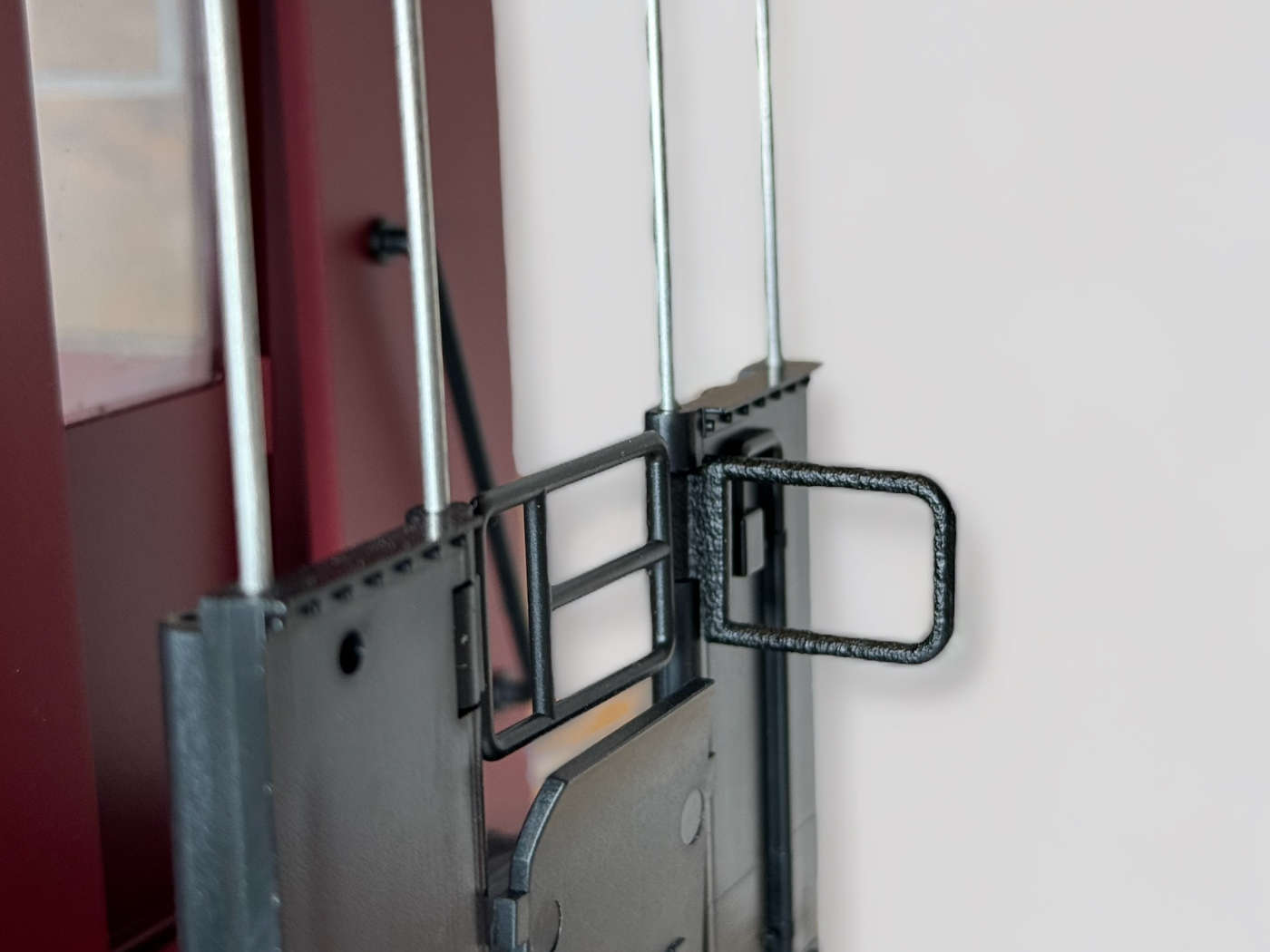 Bei einigen Wagen der HSB sind die Übergangsbügel rechteckig statt dreieckig. Variante zu 2574. Schwarz lackiert.